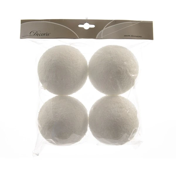 4 Palline Natalizie, diametro 10cm, bianche con effetto neve