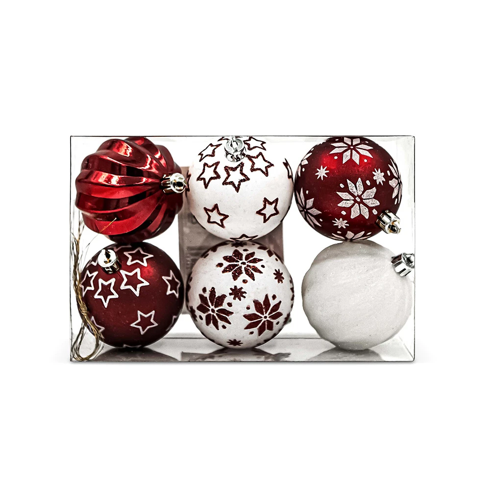 Decora il tuo Albero di Natale ed i tuoi ambienti grazie alle Palline Natalizie di aTe Casa. Questo set comprende 6 Sfere con decorazioni Natalizie di colore rosso e bianco, infrangibili, con diametro 70mm.