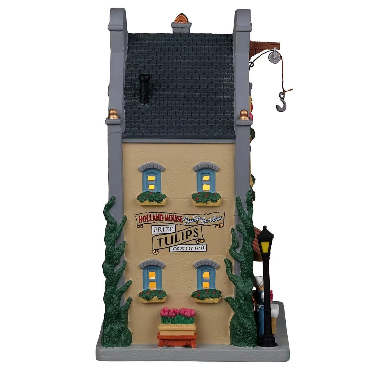 Lemax Holland House – Tulip Garden – 25897 appartiene alla collezione Lemax 2022 e fa parte del tema Lemax Caddington Village. I tulipani di certp non sono fiori tipicamente natalizi, ma la gente di Caddington Village ama la bellezza delle colorate fioriture olandesi che portano nelle loro case tutto l’anno. E dove acquistarli se non presso l’Holland House Tulip Garden, cui fiori sono vincitori di premi e certificati. La titolare nel suo abito olandese tradizionale, vi accoglierà e servirà creando bouquet di tulipani di ogni dimensione e colore.