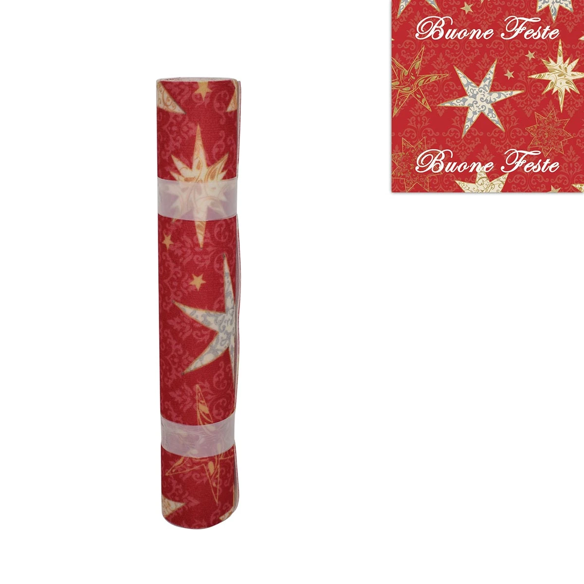 Il Tappeto Passatoia con Stelle e scritte “Buone Feste” è la soluzione ideale per addobbare i tuoi ambienti con un tocco di stile ed originalità in più. Di colore rosso, questo tappeto decorativo è largo 100 centimetri.