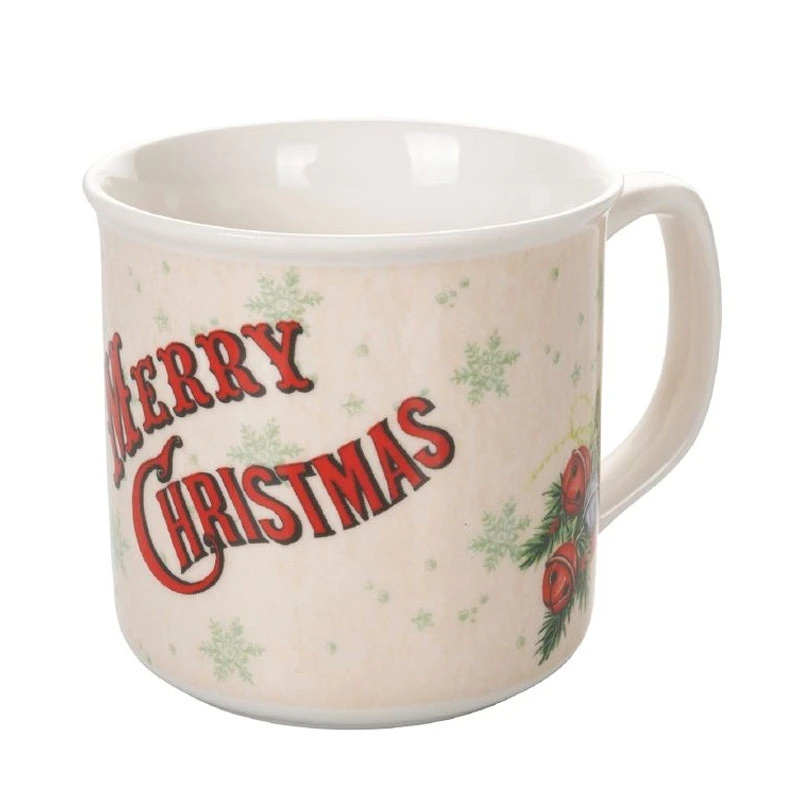 Villa d’Este Tazza Mug da Natale Miss XMas, 350ml di Villa d’Este è un’elegante tazza mug natalizia, decorata con illustrazioni di ispirazione vintage tutte al femminile. Ogni tazza rappresenta una donna, da Miss Daisy a Miss Audrey. Lo sfondo è beige mentre il bordo e il manico sono bianchi.